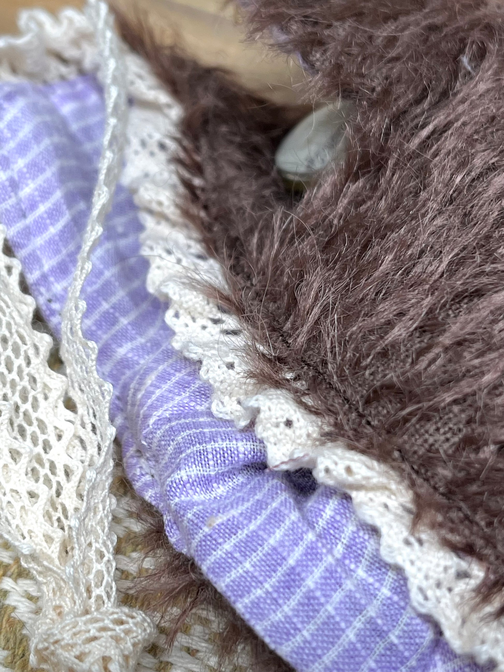 Pour Blythe uniquement -Chapeau en mohair couleur chocolat - dentelle